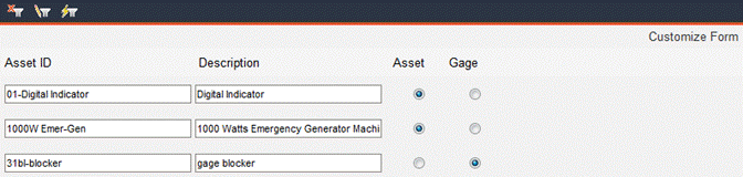 To do so, navigate to Data Tools -> Convert Assets/Gages. To convert an asset record to a gage record, click the Gage radio button associated with the asset and click Apply. To do the reverse, click the Asset radio button and click Apply. You can use the All to Asset or All to Gage buttons to convert all items to one view or the other. Make the selection and then click Apply.