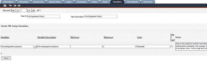 Navigate to the Route Preventative Maintenance Setup -> Asset List -> Information sub-tab and locate each additional asset record. Complete the steps above for each remaining asset in the list.