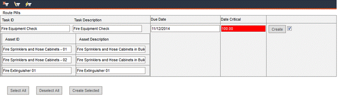 Navigate to the Preventative Maintenance menu and select Manual Create PMs. Scroll to the bottom section of the form and you’ll see that the route PM task is shown with the corresponding assets.