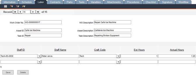 In the Labor tab, you can edit the labor information for the current work order task.