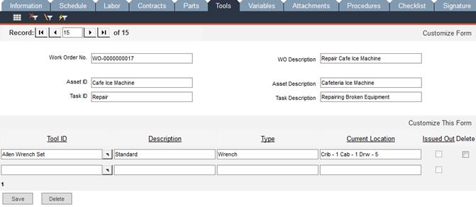 After selecting the tool, click Save and a new blank row of fields will appear, allowing you to enter another tool record.