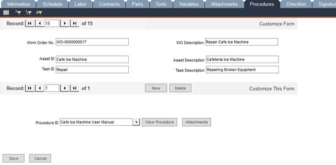 Work Order Manager - Procedures Tab