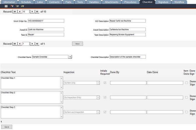 Work Order Manager - Checklist Tab