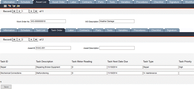Be sure to click the Save button at the bottom of the Multitask Work Orders -> Information tab before exiting the form.