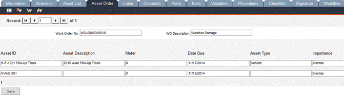 Multitask Work Orders - Asset Order Tab