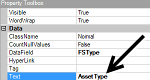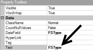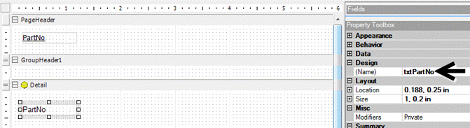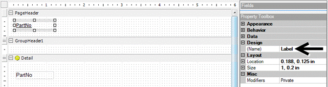 When you drag a field to the canvas, not only is the data field placed on the canvas, but also a label for the field. Both of these are called controls. To see which control is the data field and which control is the label, click the control to select it and then view its properties in the Property Toolbox.