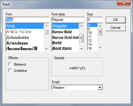 The Font property window opens, displaying the font, font style and size. Close the window.
