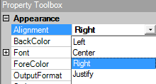 Change the alignment of the label to match the other labels. Click the Alignment property and then click the alignment drop-down. Select Right.