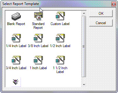 the toolbar and the Select Report Template window will open: