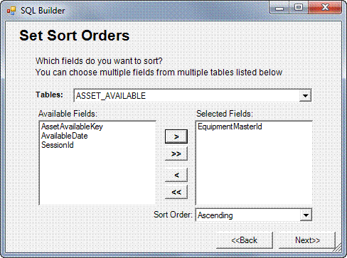 Repeat the field selection process to select the fields that will define the sort order of your records for your report in the Set Sort Orders window.