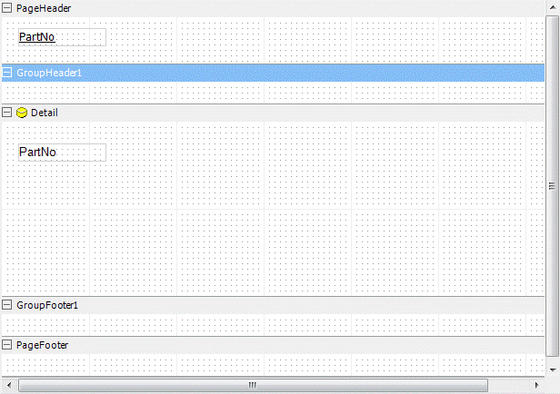 Now you need a group heading. The data field you use for this heading should be the field that you use to link with the master report. It is not necessary to reflect the content of the data field in the heading but you must make sure to set the DataField in the Property Toolbox into the link field.