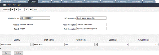 In the Labor tab, you can edit the labor information for the current work order task.