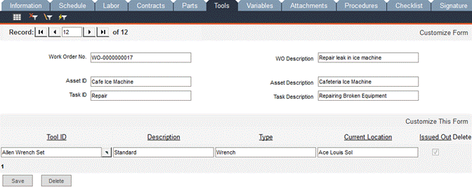 After selecting the tool, click Save and a new blank row of fields will appear, allowing you to enter another tool record.