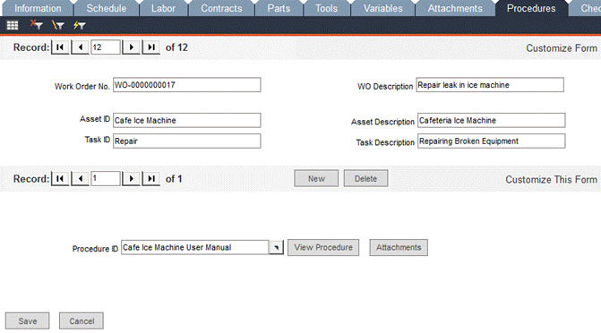 Work Order Manager - Procedures Tab