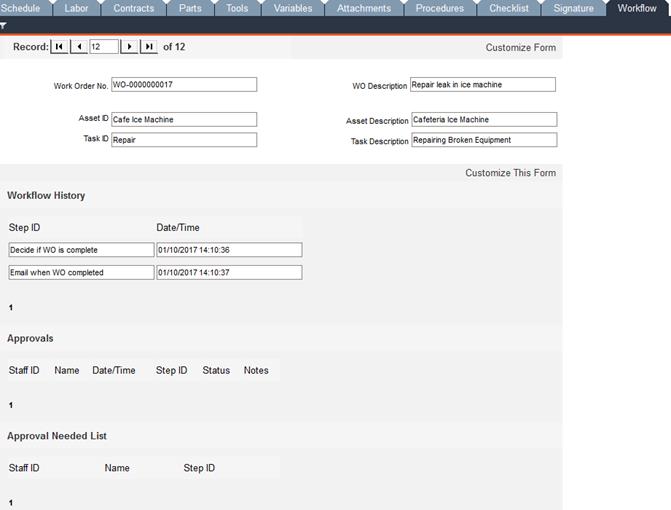 Work Order Manager - Workflow Tab